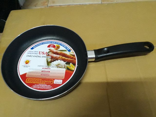 * Chảo có độ dày 1/2cm và tay cầm được làm băng nhựa pp