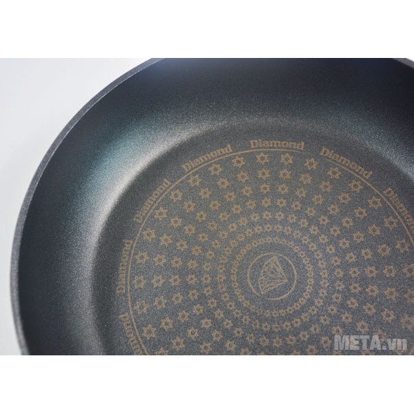 Lòng chảo phủ tinh thể kim cương: Lớp tinh thể kim cương được phủ ở trên cùng lòng chảo giúp tăng khả năng chống dính, hạn chế trầy xước gấp 5 lần chảo thường.