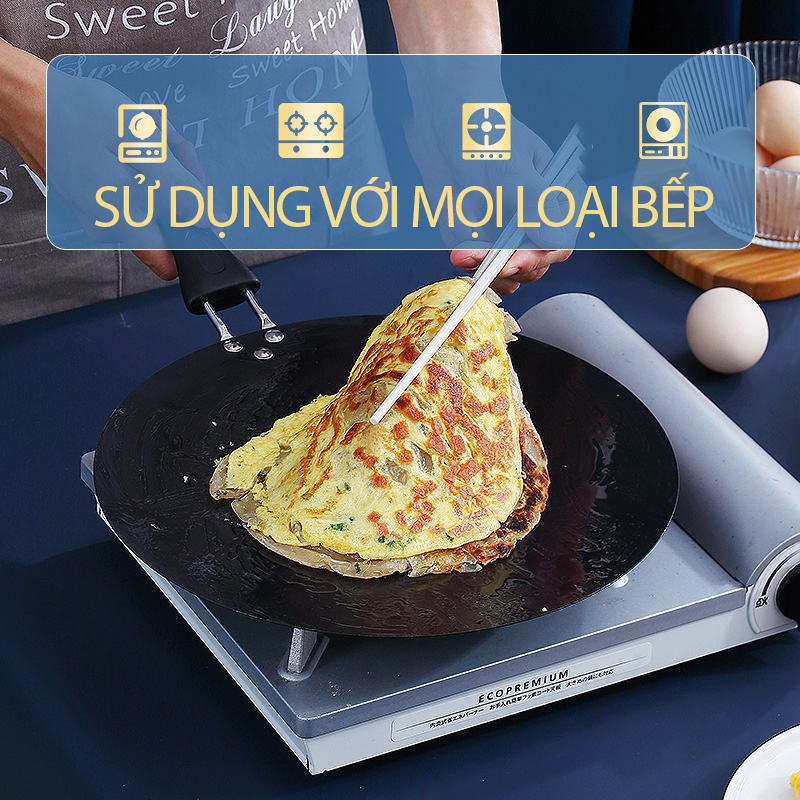 -> Lòng chảo được thiết kế theo kiểu dẹt với độ sâu cực nhỏ giúp bạn dễ dàng làm một số món ăn như trứng rán, bánh kếp, beef stake,...