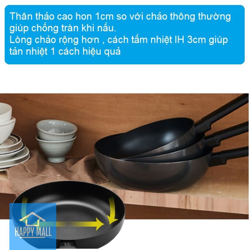 - Kích thước: đường kính chảo 20,24,26,28cm, cao 8cm