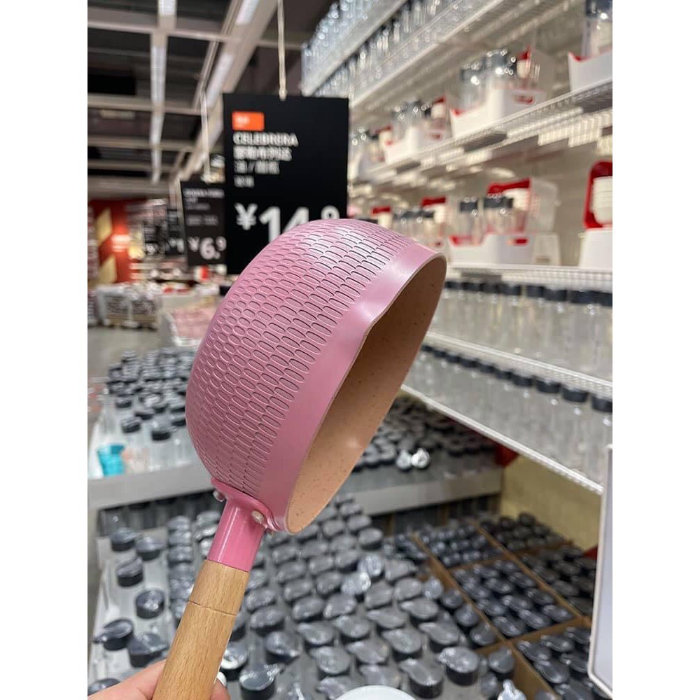 Nhà cửa & Đời sống > Dụng cụ nhà bếp > Chảo || Chảo chống dính lòng sâu có tay cầm cán gỗ chống bỏng màu pastel lúa mạch size 18cmCòn hàng