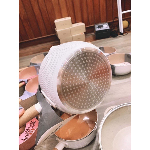 ❤️ Chảo chống dính lòng sâu có tay cầm cán gỗ chống bỏng màu pastel lúa mạch size 18cm- Thân nồi dày dặn, dẫn nhiệt nhanh và đều
