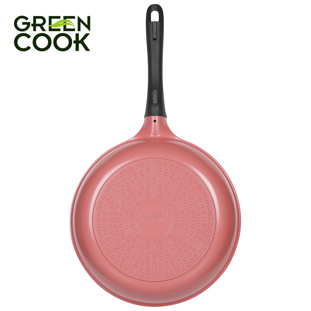 Chảo chống dính men đá ceramic đáy từ 20-24-26-30 cm Green Cook GCP03 màu hồng công nghệ 7 lớp chống dính Hàn Quốc