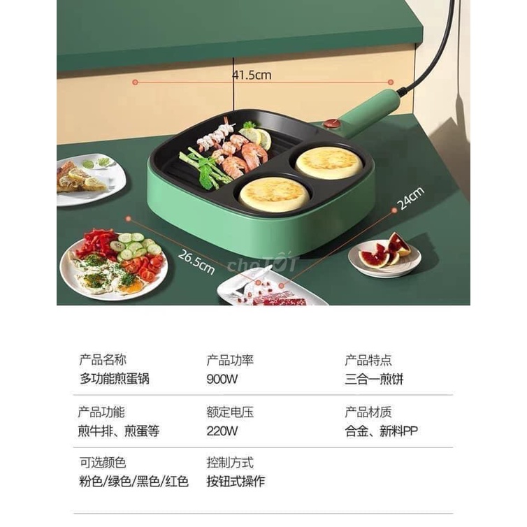 Chảo Chống Dính mini, Chảo Điện 3 ngăn chống dính, Chảo ốp la trứng, Làm Bánh Mì, Chiên, Xào Đa Năng Cao Cấp