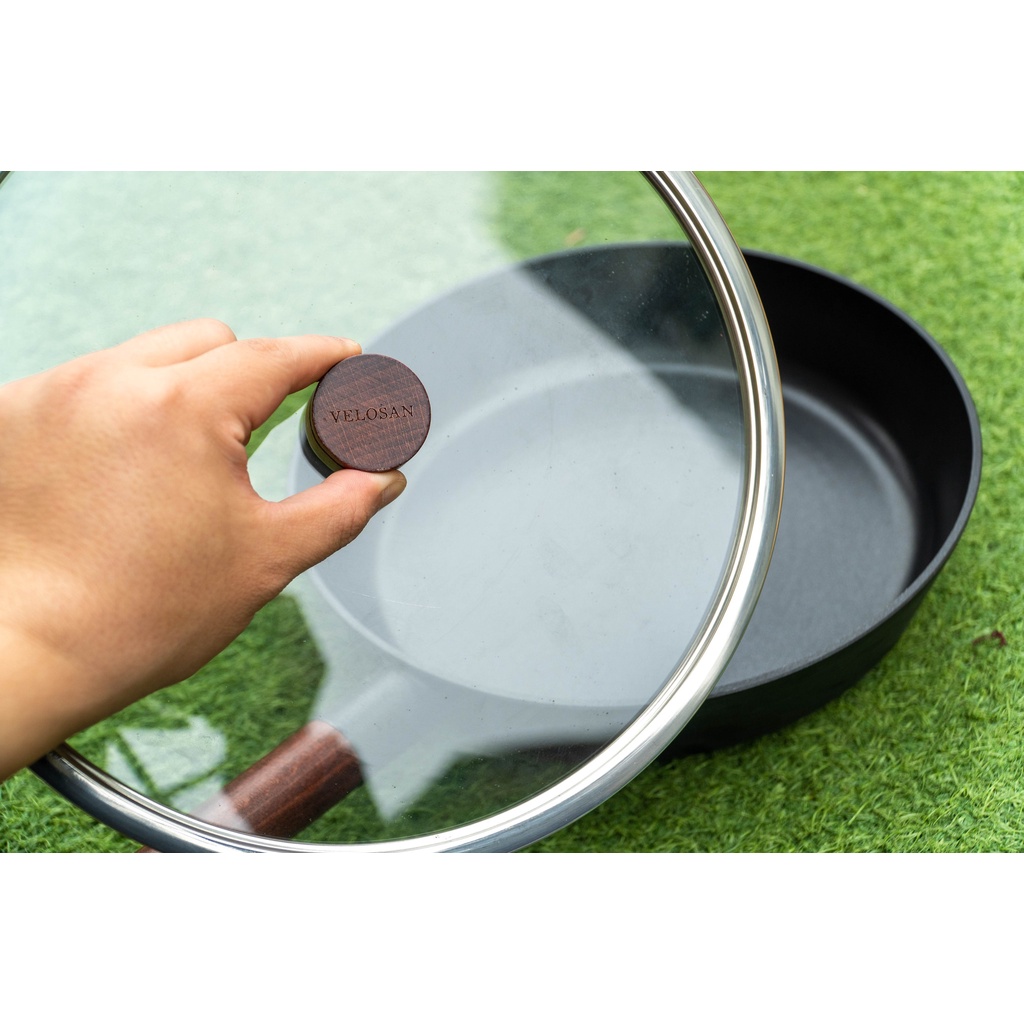 🔶 Núm cầm nắp kính + Cán chảo bằng gỗ giúp chống bỏng hiệu quả, đồng thời mang lại vẻ đẹp rất tinh tế, món quà đến từ tự nhiên, sự kết hợp hài hòa với món ăn