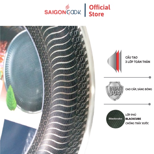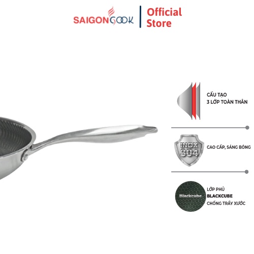 Nhà cửa & Đời sống > Dụng cụ nhà bếp > Chảo || Chảo chống dính Saigoncook Blackcube Prime X3 - Cạn lòng inox 304Còn hàng