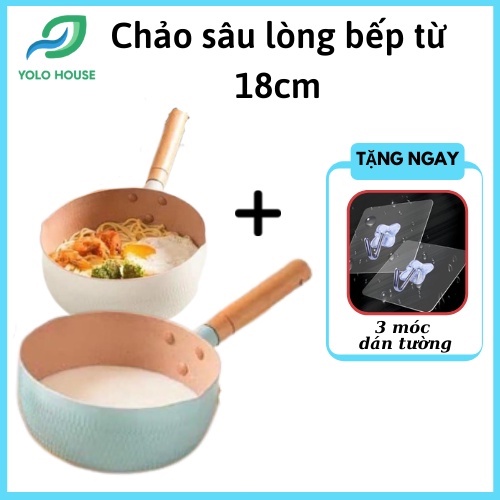 Chảo chống dính sâu lòng 18cm, Chảo chống dính bếp từ 18cm Chiên Xào Nấu, Quánh Sâu Lòng Tay Cầm Gỗ Tiện Lợi
