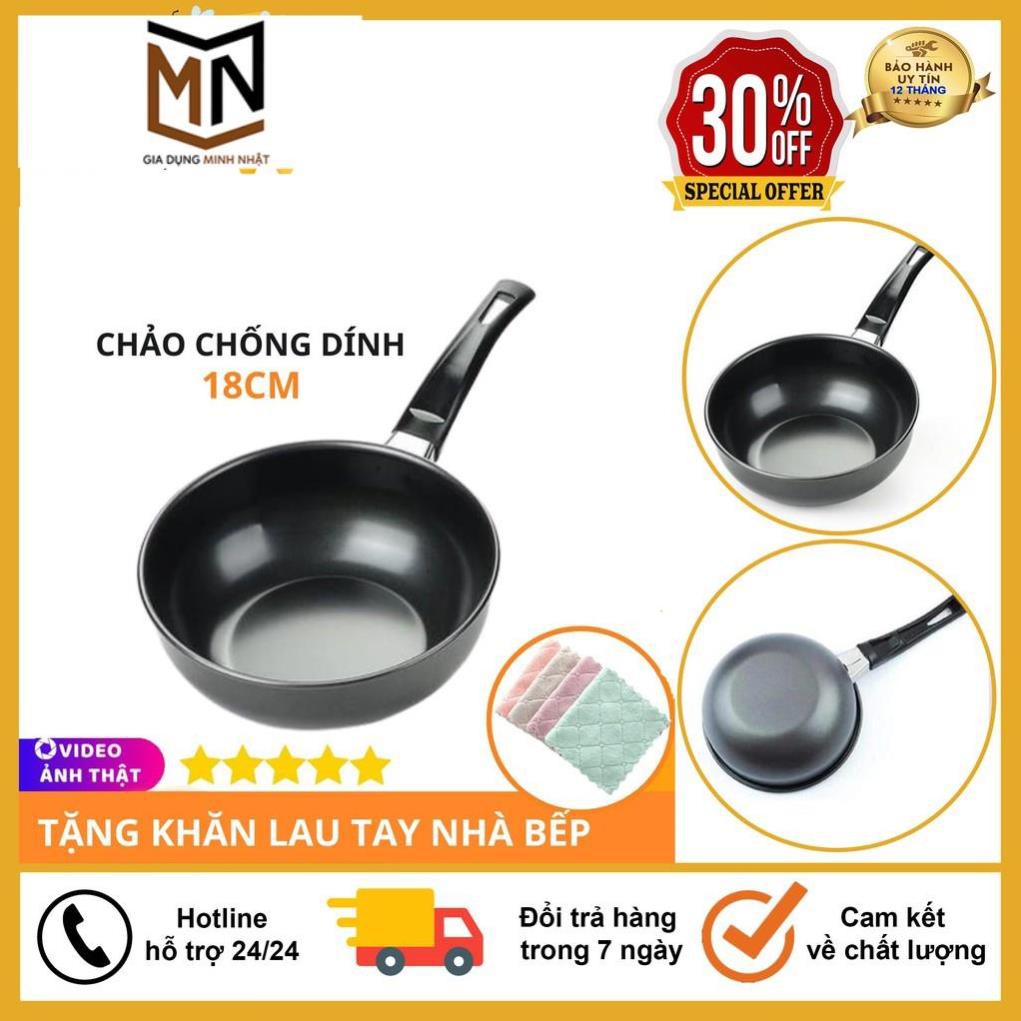 Chảo Chống Dính Sâu Lòng 18cm, Chiên, Dán, Xào Đa Năng Siêu Bền Dùng Cho Mọi Loại Bếp - Tặng Kèm Khăn Lau Bếp==================================