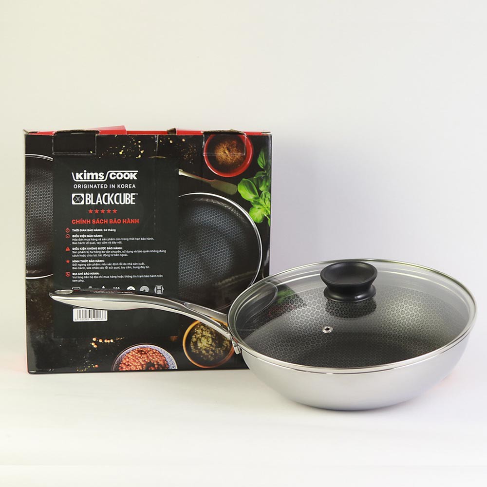 - Chảo chống dính sâu lòng Kims Cook Blackcube 3 lớp đúc liền inox 304 đáy từ