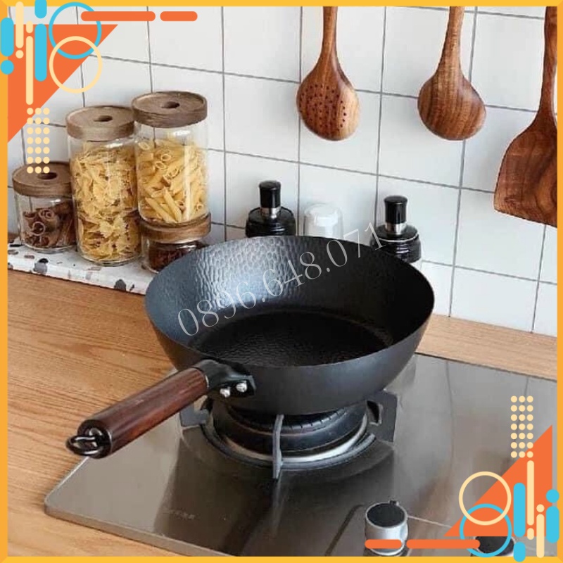 Chảo Chống Dính Sâu Lòng Cao Cấp 28cm Bếp Từ Thép Vân Búa 3 Lớp Siêu Bền Theo Phong Cách Nhật Bản