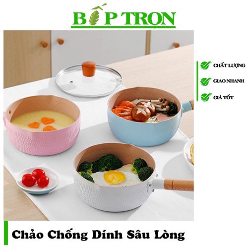 Chảo Chống Dính Sâu Lòng, Chảo Vân Đá Bếp Từ Size 18cm Hàng Xuất Nhật Màu Siêu Đáng Yêu Tay Cầm Chắc Chắn - BẾP TRỌN