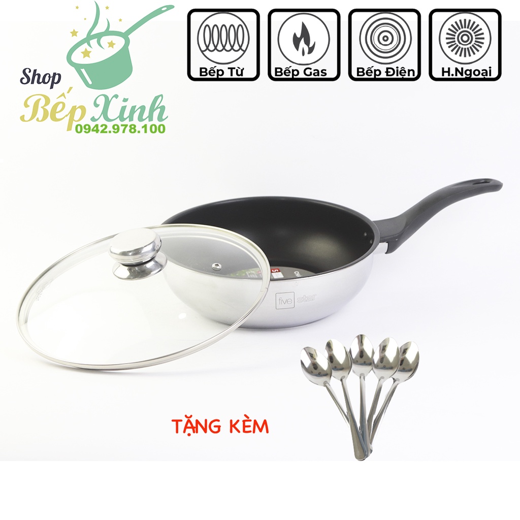 Nhà cửa & Đời sống > Dụng cụ nhà bếp > Chảo || Chảo chống dính sâu lòng có nắp kính đáy từ cao cấp Fivestar 24cm / 26cm , tặng 5 muỗng ănCòn hàng