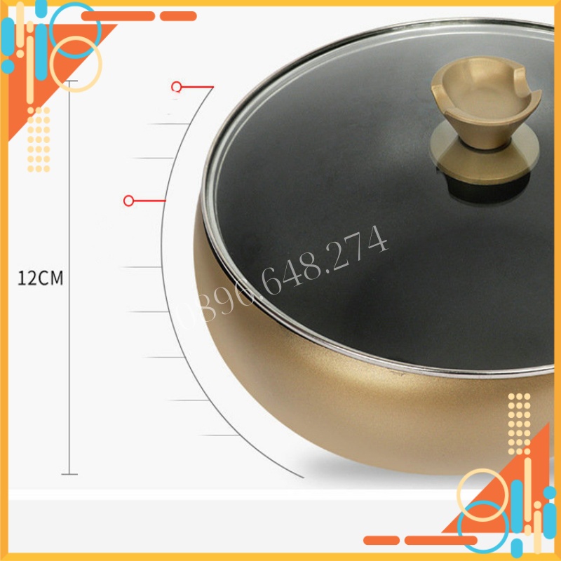 Giới thiệu Chảo Chống Dính Sâu Lòng Có Nắp 32cm Đựng Hộp Cao Cấp Đun Trên Bếp Từ, Bếp Điện, Ceramic, Gas