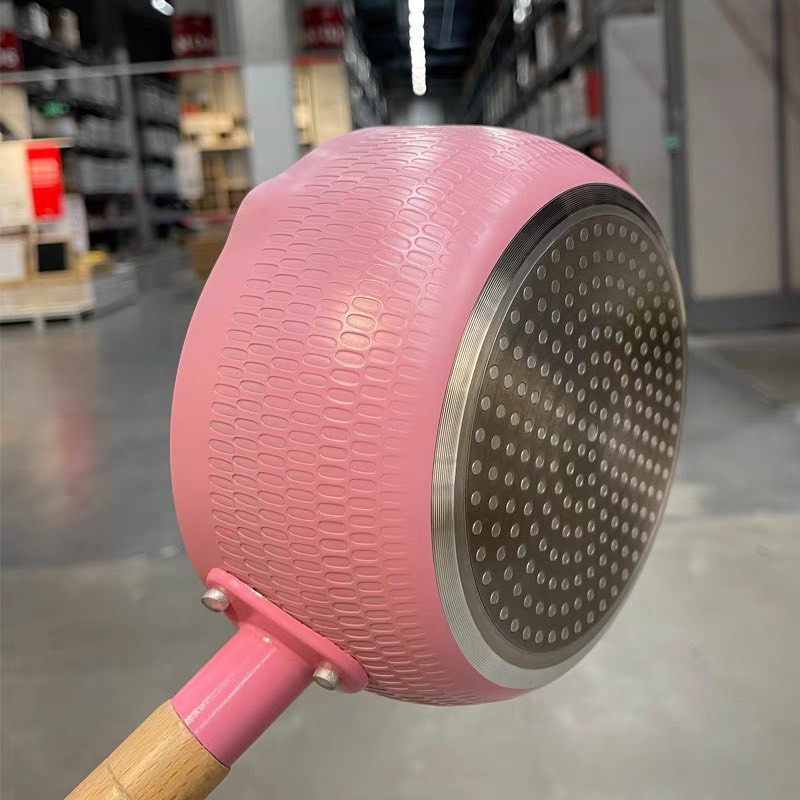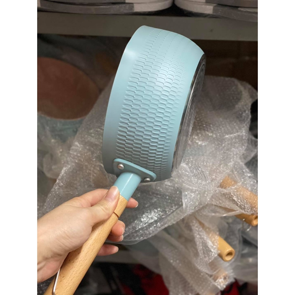 - Chảo, Nồi Sâu Lòng Chống Dính 18cm Chiên Xào Nấu, Chảo, Quánh Sâu Lòng Tay Cầm Gỗ Chống Bỏng Màu Pastel Tiện Lợi, Nồi Nấu Bột Cho Bé
