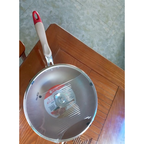 - Chảo dùng hợp kim nhôm dày tăng độ cứng và giảm đi trọng lượng so với inox, giúp người phụ nữ cầm dễ dàng