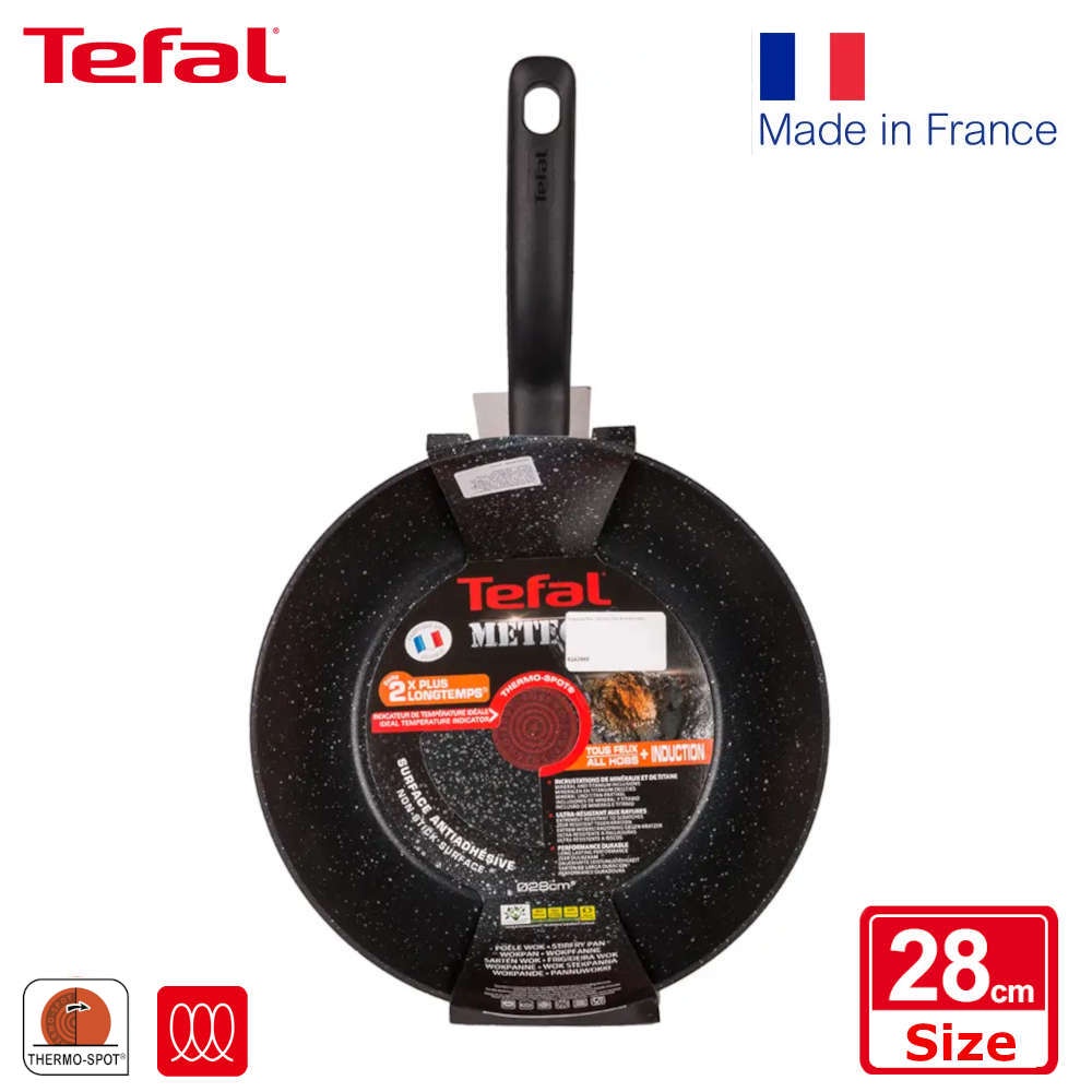 - Chảo chống dính Tefal Meteor nhập khẩu từ Pháp - Made in France. Chảo bếp từ Tefal có cấu tạo đa lớp với chất liệu nhôm nguyên chất đúc liền, đi cùng lớp chống dính khoáng chất thiên thạch (Meteor) siêu bền tạo nên bề mặt chống dính siêu bền vượt trội