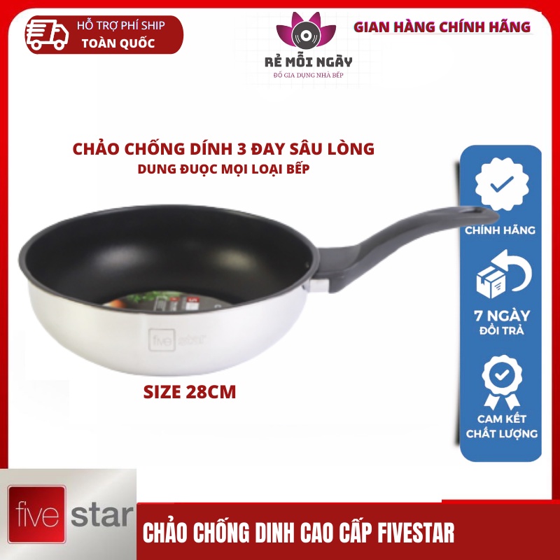 Nhà cửa & Đời sống > Dụng cụ nhà bếp > Chảo || Chảo Chống Dính Sâu Lòng Inox 3 Đáy Fivestar FSCL28IN002 Đường Kính 28cm ( nấu được các loại bếp) bảo hanh 2 nămCòn hàng