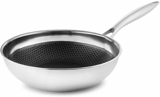 - Thoải mái đun nấu với các dụng cụ bằng kim loại Các trụ inox xếp lập phương bảo vệ cho lớp chống dính thấp phía dưới tránh khỏi va chạm ,tác động từ dụng cụ nấu bằng kim loại nên không dính. Chảo có thể dùng thoải mái với các dụng cụ nấu ăn bằng kim loại thậm chí là miếng rửa bằng kim loại.