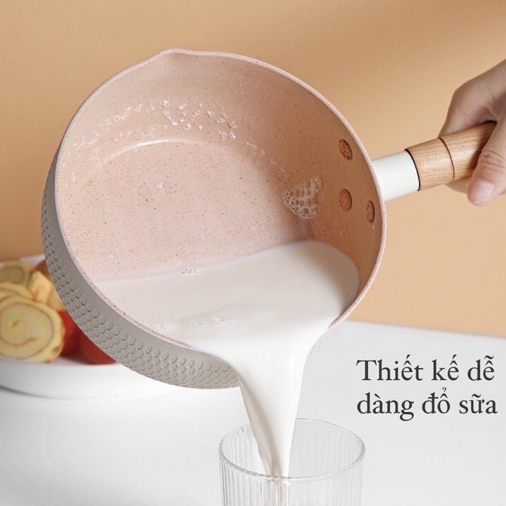 - Cán cầm bằng gỗ giúp cách nhiệt khi nấu ăn.