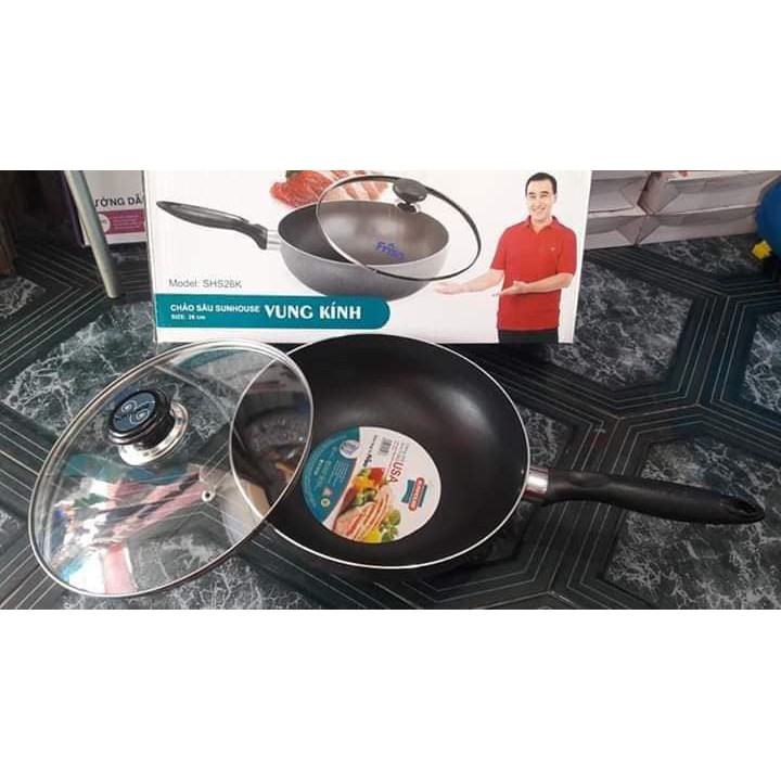 Nhà cửa & Đời sống > Dụng cụ nhà bếp > Chảo || CHẢO CHỐNG DÍNH SÂU LÒNG NẮP KÍNH SUNHOUSE 26 cmCòn hàng