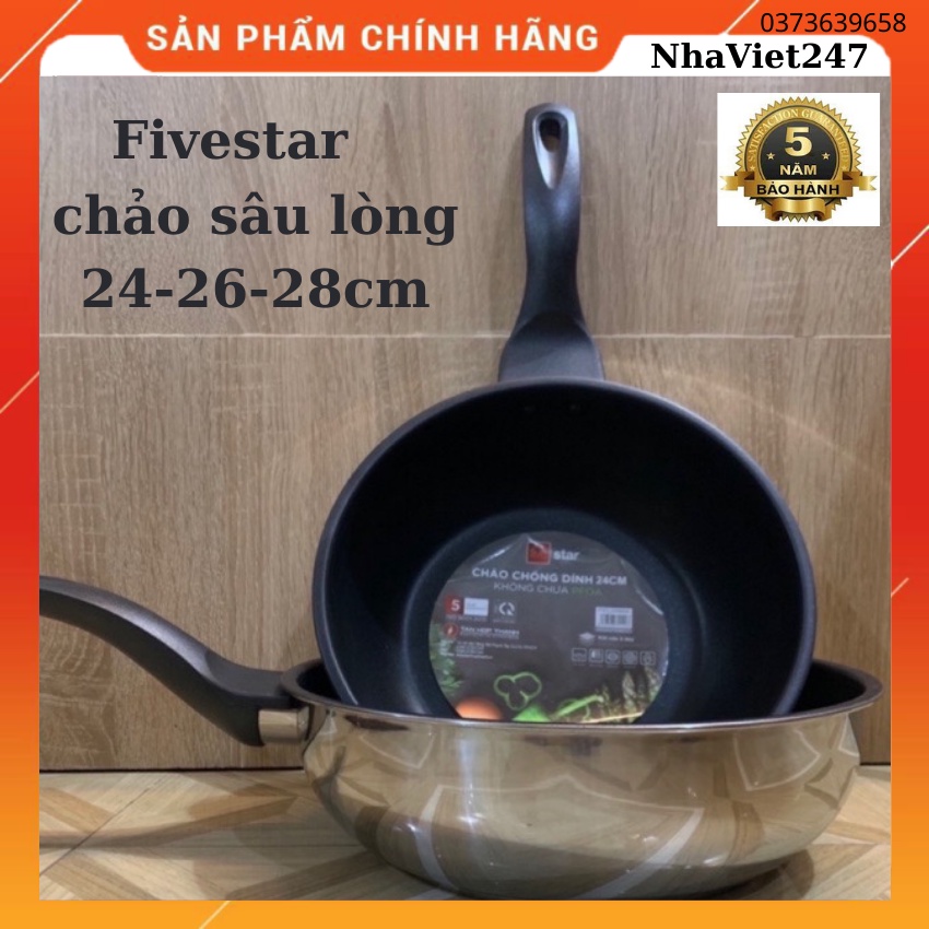 Nhà cửa & Đời sống > Dụng cụ nhà bếp > Chảo || Chảo Chống Dính Sâu Lòng Fivestar-Inox 430-3 Đáy-24-26-28cm-chảo chiên,sào,rán-đáy từ chính hãng -giá rẻ-BH 5NCòn hàng