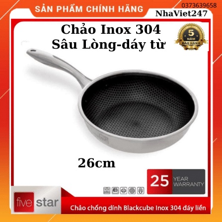 Nhà cửa & Đời sống > Dụng cụ nhà bếp > Chảo || Chảo Chống Dính Sâu Lòng-Fivestar-Blackcube-26cm-Inox 304-dạng tổ ong-3 Lớp-Đáy Liền-siêu bền đẹp-chính hãng-BH 5 namCòn hàng