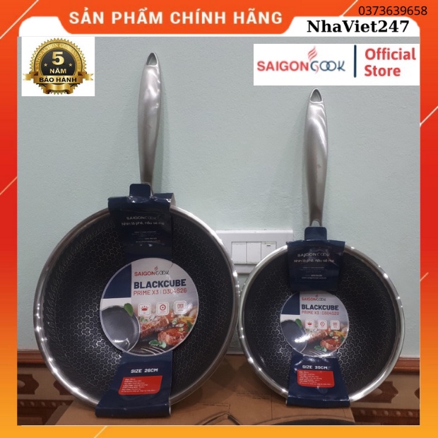 Nhà cửa & Đời sống > Dụng cụ nhà bếp > Chảo || Chảo Chống Dính Sâu lòng-Saigoncook-Blackcube Prime X3-Inox 304-3 lớp-chống trày sước-siêu bền,đẹp,chính hãng-giá rẻCòn hàng