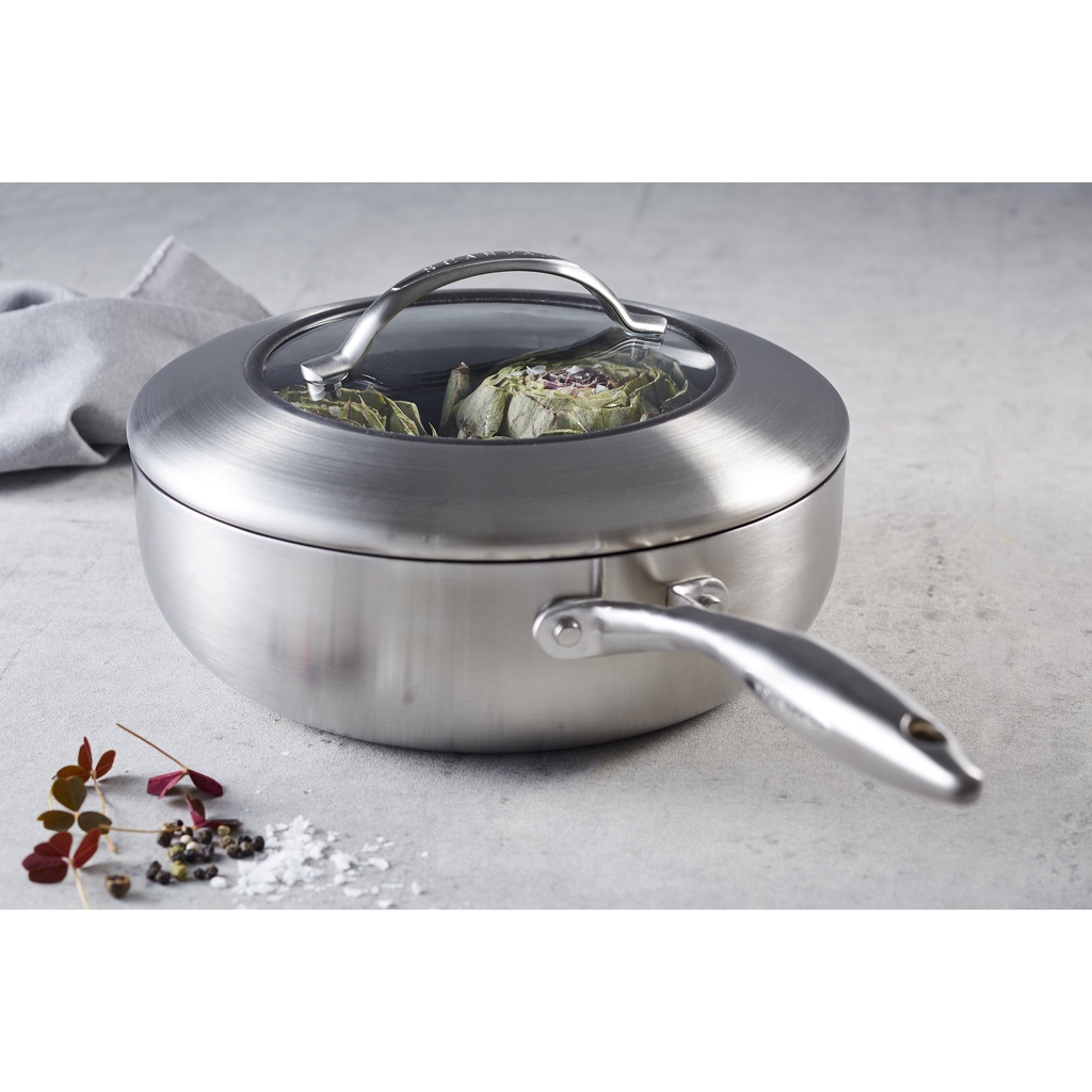 Loại chảo sâu lòng có nắp.Thiết kế 7 lớp đúc liền thân đáy.