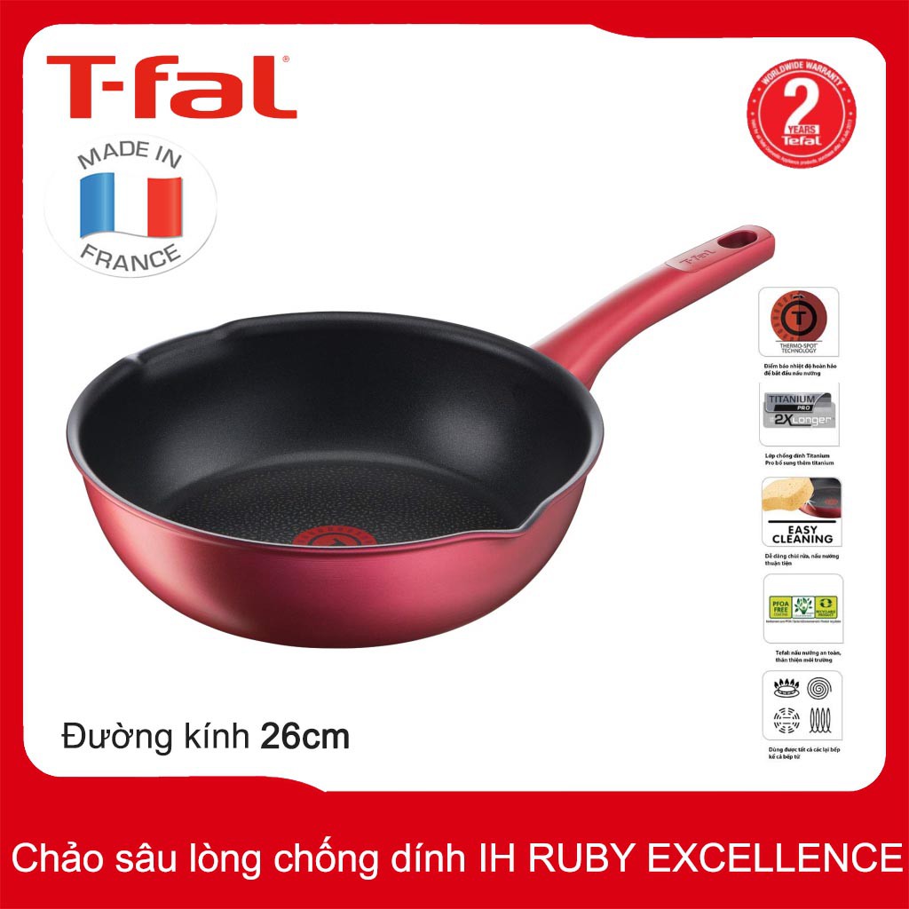 Giới thiệu Chảo chống dính sâu lòng T-fal IH RUBY EXCELLENCE G13677 đường kính 26cm có miệng rót - Made in France
