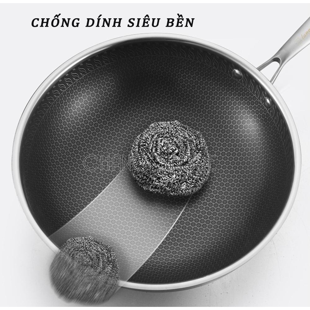 - Tay cầm bằng inox đúc rỗng, kỹ thuật đặc biệt ghép nối với thành chảo nên không nóng, nhẵn và sáng bóng nên dễ dàng rửa sạch và luôn đẹp, sang trọng.