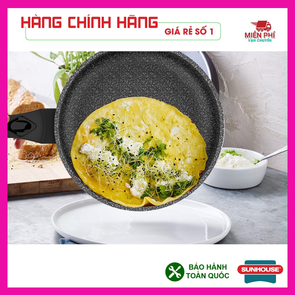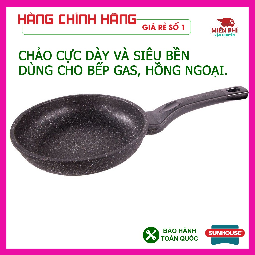 Chảo chống dính siêu bền đá Sunhouse, chảo đá Sunhouse SBD24,26,28,30cm, đáy dày dặn, phù hợp bếp gas, bếp hồng ngoại