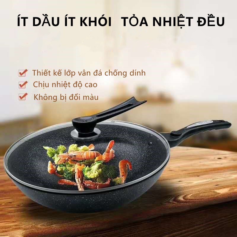 ✔️ Chảo được thiết kế có vung kính bằng thủy tinh cao cấp giúp chị em dễ dàng quan sát thức ăn trong quá trình chế biến