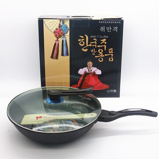 Chảo Chống Dính Siêu Bền Sâu Lòng Đá Coopia Hàn Quốc có nắp kính size 32cm (Tặng Muỗng Gỗ)