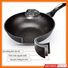 - Chảo đá siêu bền nhờ 5 lớp phủ: lớp phủ đá hoa cương, lớp phủ bạc, lớp phủ mặt trên, lớp phủ ở giữa, lớp phủ lót.