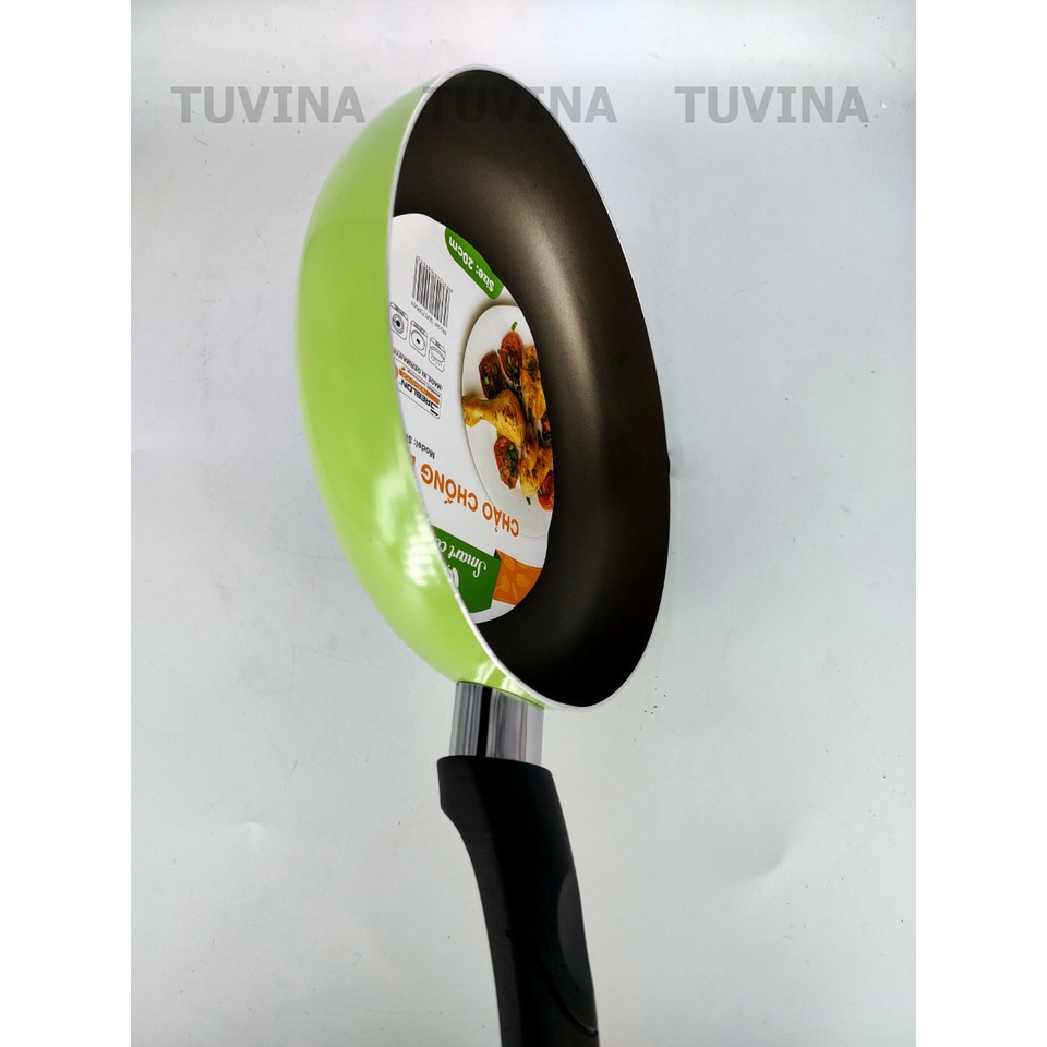 ☑️ Kiểu dáng hiện đại: Bề mặt bên ngoài chảo màu xanh cốm được phủ sơn chống bám bẩn giúp dễ dàng vệ sinh, lau rửa. Lòng chảo phủ chống dính màu khói vàng trơn nhẵn đem đến diện mạo trẻ trung, hiện đại. Đáy tiện 3 vòng chống trượt khi dùng trên bếp ga.