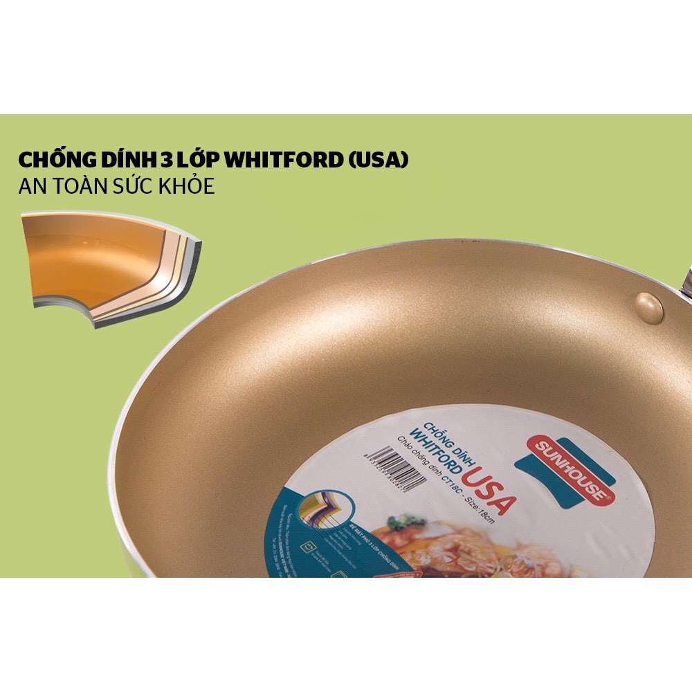 Chảo chống dính Sunhouse hợp kim nhôm cao cấp, 3 lớp lòng vàng ( không dùng được bếp từ) size 18,size 24