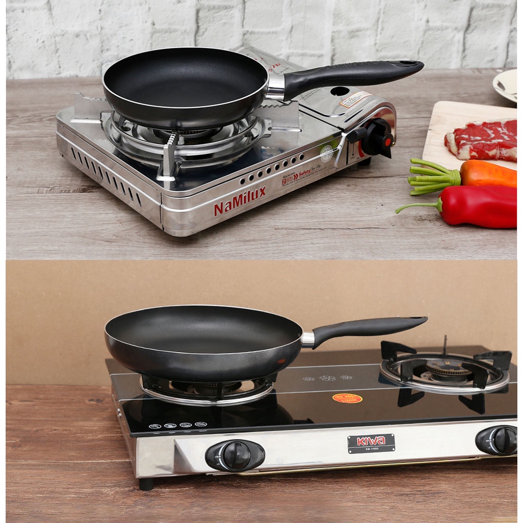✔️ Sử dụng được trên nhiều loại bếp: Chảo dùng được trên bếp gas, bếp hồng ngoại, không dùng trên bếp từ.