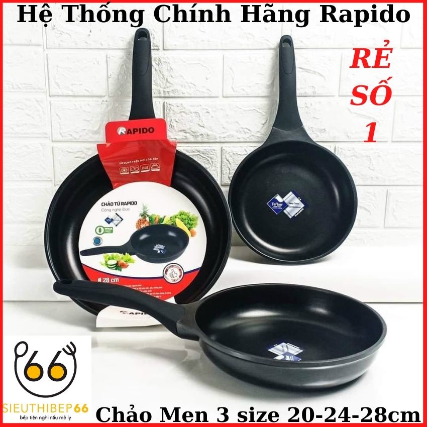 Nhà cửa & Đời sống > Dụng cụ nhà bếp > Chảo || Chảo chống dính Teflon Rapido – size 20-24-28cm, chảo từ men đen, dùng bếp từ, bếp điện, chịu nhiệt lên tới 500 độCòn hàng