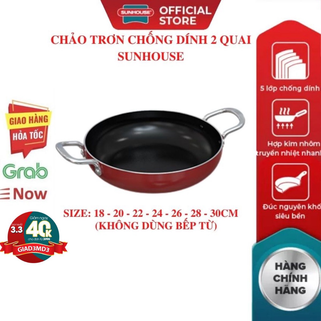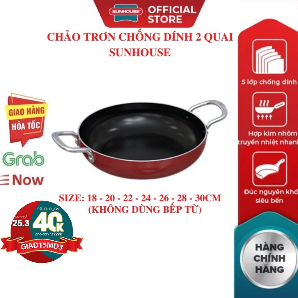 Nhà cửa & Đời sống > Dụng cụ nhà bếp > Chảo || Chảo chống dính trơn SUNHOUSE 18 20 22 24 26 28 30 CM Siêu Dày (dùng được mọi loại bếp) Mới 100% Chính Hãng Bảo HàngCòn hàng