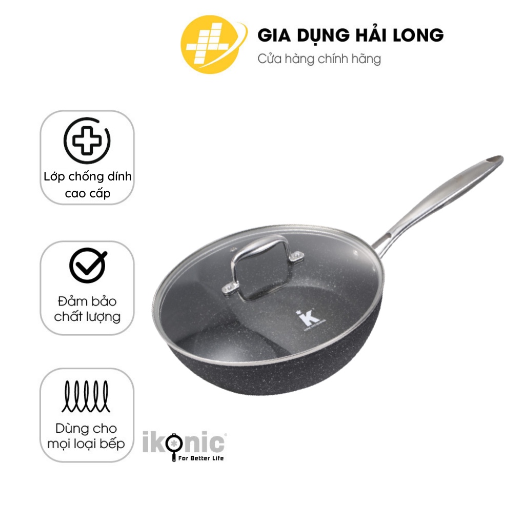 Nhà cửa & Đời sống > Dụng cụ nhà bếp > Chảo || Chảo chống dính vân đá cao cấp có nắp kính IKONIC IK88, chất liệu hợp kim nhôm nguyên chất,cho mọi loại bếp-BH 24 thángCòn hàng