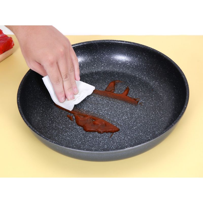 Phủ chống dính vân đá độ bền cao, hạn chế cháy khét, ít sử dụng dầu mỡ khi chiên xào, bảo vệ sức khỏe gia đình bạn.