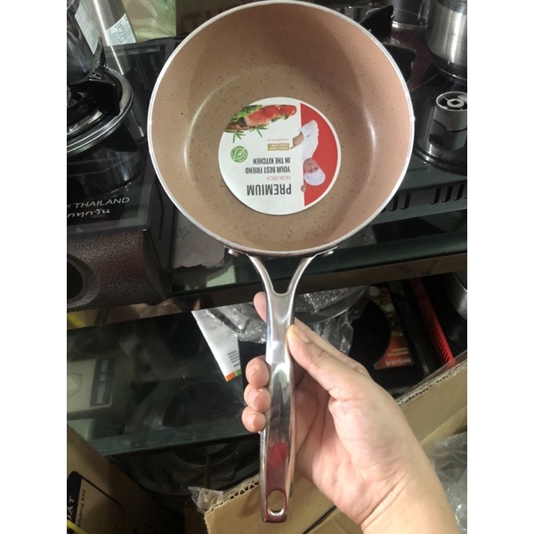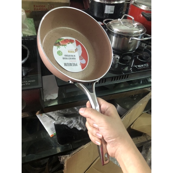✔️ Chảo chất liệu nhôm hợp kim, cán Inox 304 cao cấp, nên độ bóng, sáng là nhất hạng rồi ạ. Dòng này là hợp kim nguyên khối dập liền chứ không ghép các lớp ở đây như các dòng thông thường nên khả năng truyền nhiệt cao và đồng đều. Chiên rán đồ ngon hơn, không bị cháy. Ưu điểm không bị phồng đáy nữa ạ.