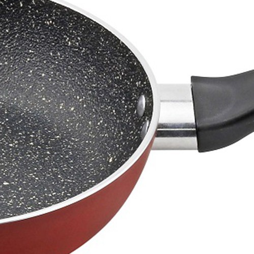 - Chảo dùng hợp kim nhôm dày tăng độ cứng và giảm đi trọng lượng so với inox, giúp người phụ nữ cầm dễ dàng