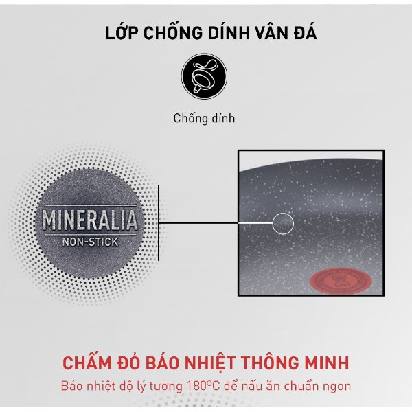 Chảo chống dính vân đá Tefal Natura 20cm có lớp phủ vân đá bên trong và bên ngoài, giúp chống dính, chống trầy tốt hơn và dễ dàng vệ sinh.Chấm đỏ báo nhiệt thông minh giúp món ngon trọn vị.
