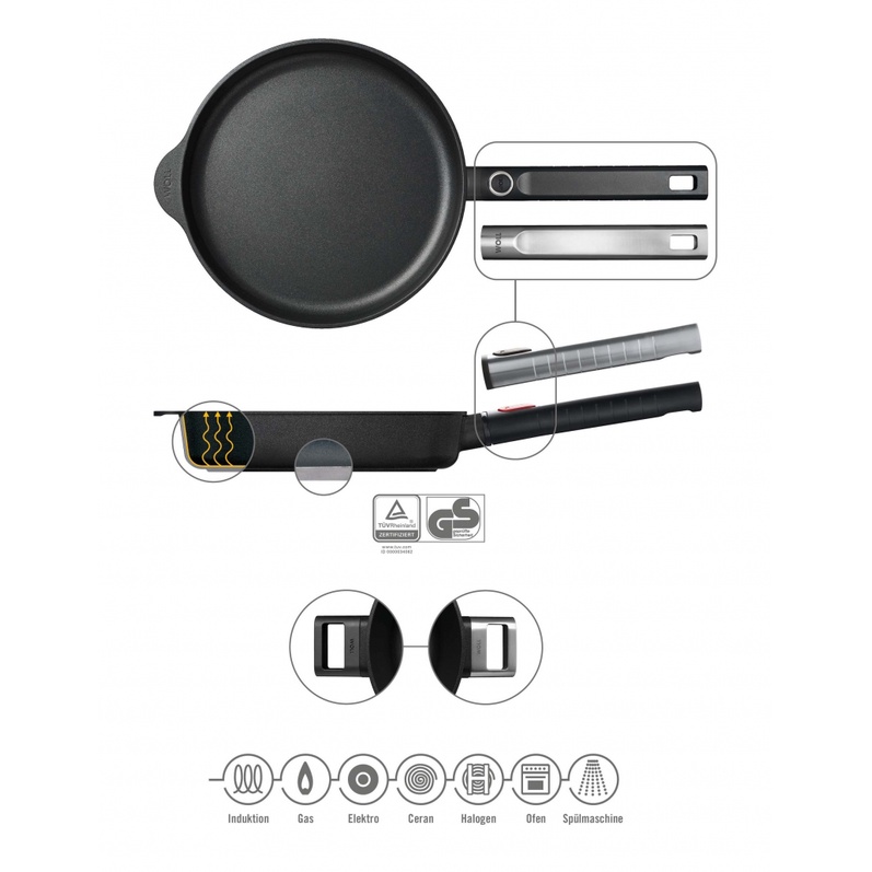 Các sản phẩm chảo Woll cho phép bạn tháo rời và gắn bằng một tay – đảm bảo luôn luôn dễ dàng và thuận tiện trong quá trình sử dụng.