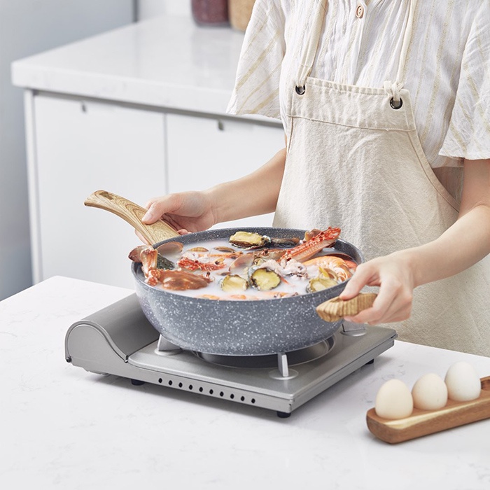 Ngoài ra, chảo chống dính Zan Jia còn đặc biệt được phủ một lớp màu giả đá maifan, rất được ưa chuộng trong nhà bếp với phong cách chấm bi tự nhiên, mang lại vẻ ngoài sang trọng và tươi mới hơn.