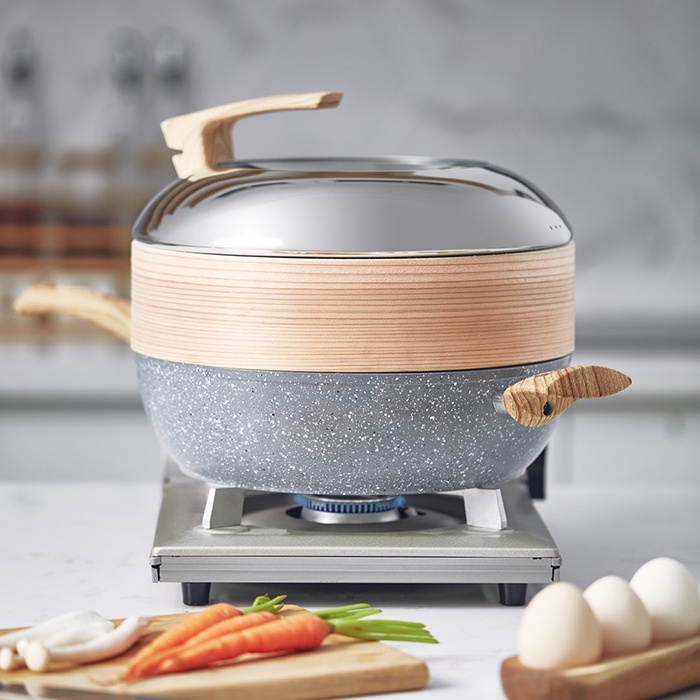 Về kết cấu, thân nồi được gia công từ vật liệu chính là hợp kim nhôm 3003 được lựa chọn cẩn thận. Hơn nữa chảo chống dính còn được thiết kế với tỷ lệ vàng là miệng nồi dày, thành nồi mỏng và đáy dày giúp cải thiện tính đồng nhất của quá trình dẫn nhiệt một cách hiệu quả, giảm khói dầu và làm nóng đồng đều hơn. Đáy nồi sử dụng vật liệu composite định hình, không dính, hút dầu nhẹ và đặc biệt là có thể được sử dụng trên mọi loại bếp như bếp từ, gas, hồng ngoại, bếp điện,...