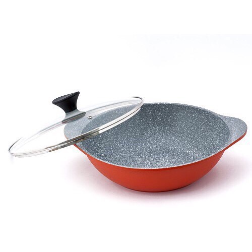 Chảo đá 2 tay cầm Ecoramic ECWK-ST28LD sản xuất với công nghệ cao, phủ đá thiên nhiên siêu bền và thân thiện với môi trường. Chảo đá, đúc nguyên khối 5 lớp siêu bền, dày 3mm, chịu lực, chống biến dạng cực tốt. Thí nghiệm chùi bằng cước inox 100,000 lần vẫn không bong tróc lớp chống dính vân đá.