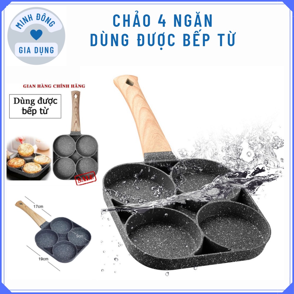 Chảo đá 4 ngăn chống dính bếp từ- Khuôn chảo chiên làm rán trứng làm bánh - Chảo chiên trứng 4 ngăn cáo cấp tiện lợi