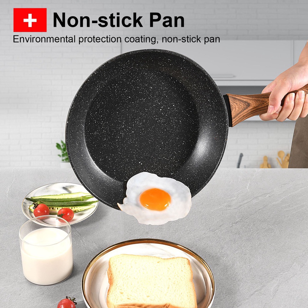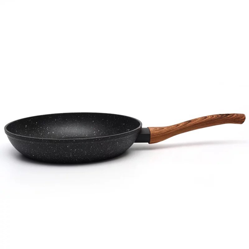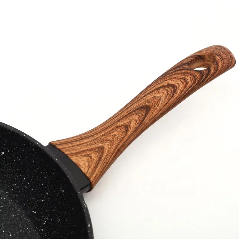 Chảo Đá Bếp Từ Tay Cầm Gỗ Size Vừa Vặn Size 20cm, Kèm Nắp Kính Cường Lực Tay Nắm Đứng Cao Cấp Sang Trọng
